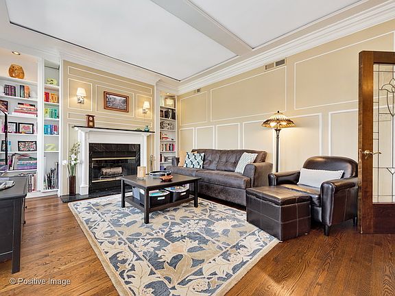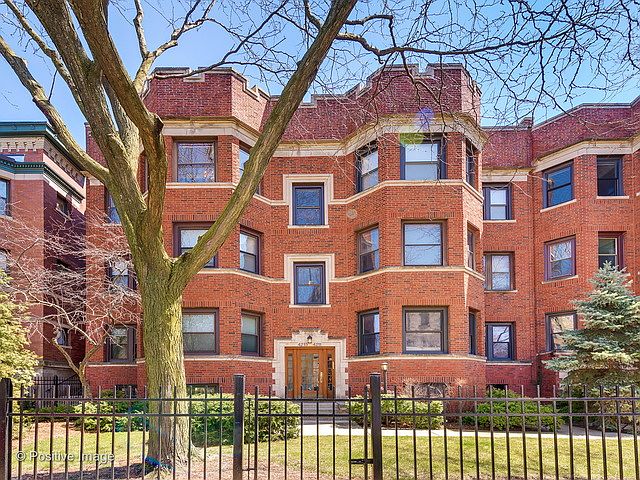Vintage, updated, light and bright top floor condo in great location. Beautiful treetop views. Best of charming vintage and new amenities. Spacious rooms, wood burning fireplace, custom trim, 9' ceilings, and excellent floor plan. Large welcoming foyer, elegant living room, dining room, huge eat-in kitchen, three bedrooms, two full baths and mud room/laundry room. Hardwood floors, quartz countertops, stainless steel appliances, air conditioning, and secure parking included! Eight closets in unit and additional storage. Private deck overlooks the patio. Short walk to Red Line and express buses. Too much to list here must see.