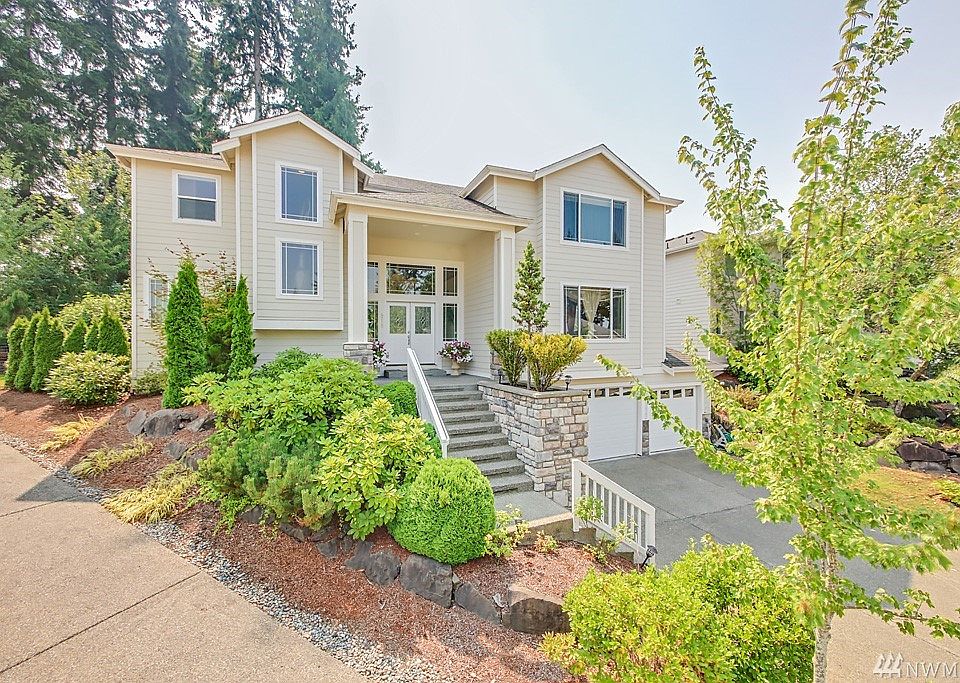 Stunning NW Contemporary home for every lifestyle! Elegant grand entry w/gleaming hardwoods, walls of windows & sun-drenched formal rms. Gourmet kitchen w/granite counters, high quality SS GE Monogram frig, Viking range&entertnmnt size island opens to family rm w/gas frplc&built-in desk. Roomy master suite w/spa-like 5-piece bath & walk-in closet. Two more bedrms&full bath. Lower level w/ den & workout room. Landscaped backyard w/audio system. 3-car garage. End of cul-de-sac. Close to Bellevue.