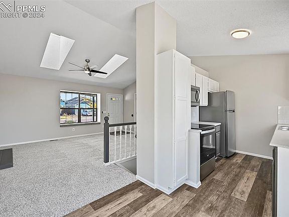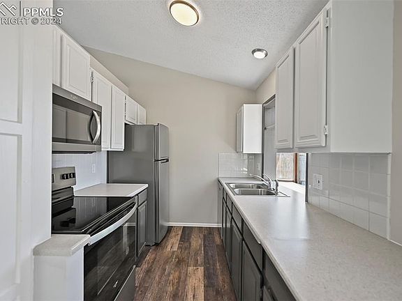 Newly renovated ranch home on large corner lot in renowned Academy District 20. This 4 bedroom 2 bath 2 car garage home has new exterior paint, new interior paint on walls, trim and doors, all new flooring throughout the home, new stainless steel kitchen appliances, new epoxy countertops, and updated bathrooms. The main level offers a living room with wood burning fireplace. Main level office with French glass doors that can serve as a bedroom with Walkin closet. The galley kitchen has an atrium window for your herb garden. In the full basement of the home, you will find two additional bedrooms, a sizeable family room, full bathroom and laundry room that includes a washer and dryer. Large corner fence yard.