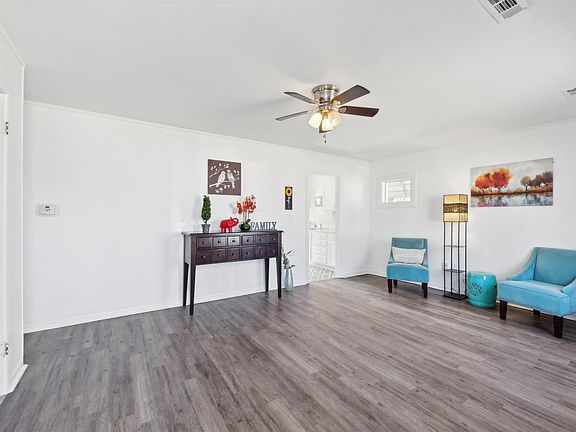 This move-in ready home features 3 bedrooms, 1 bath, and updated flooring all throughout. The sunny, spacious kitchen is equipped with a fridge and stove, offering plenty of room to cook and entertain. Neutral decor throughout provides a versatile backdrop for your personal touch. The generously sized master bedroom also includes two closets for extra storage. Outside, a large 36' x 18' shed offers ample space for storage. A perfect combination of comfort and convenience!