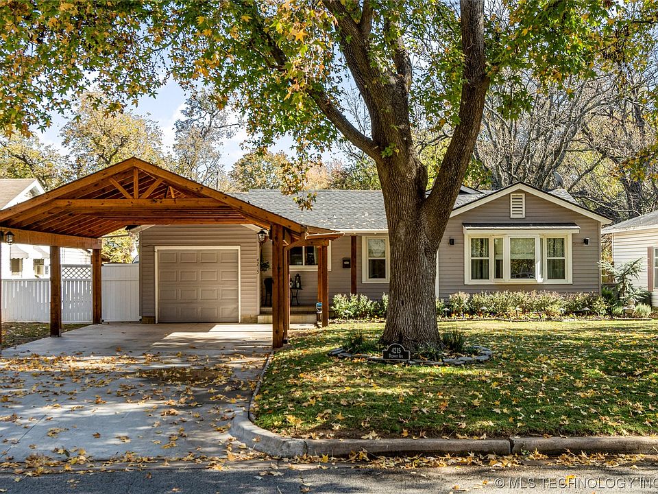 Step into this Midtown charmer! Featuring original hardwood floors. Recently remodeled kitchen with beautiful marble countertops along with stainless Steel appliances. Two additional living spaces for endless entertaining possibilities. Enjoy entering your large backyard with an above ground pool from the primary bedroom. An outdoor oasis awaits you just off the deck. Brand new roof October 2023. Walking distance to Riverside Trails, Gathering Place and Brookside. Additional private drive entrance off back of yard. Sellers are offering Buyer a closing cost incentive with an acceptable offer.