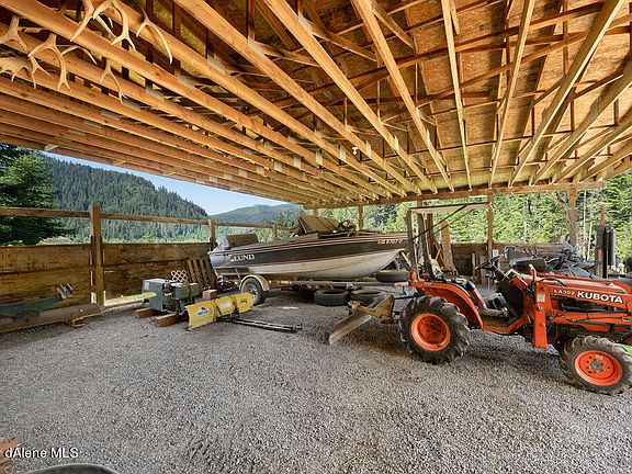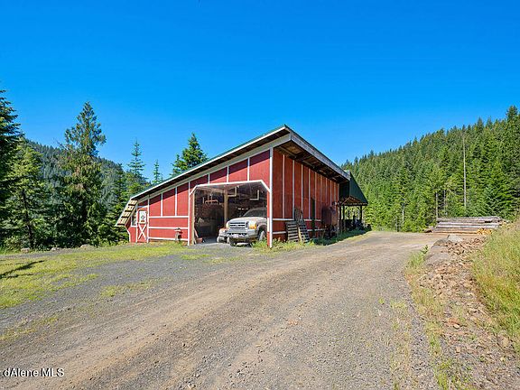 This property has the American Dream written all over it! This beautiful home is located on 8.12 acres with 3 bedrooms and 2 bathrooms 2240 sq ft home. There is a wood stove in the basement that connects to the air duct system in the home as well as a heat pump and electric furnace and even a fire place in the living room. The kitchen features ample storage as well as beautiful Corian counter tops. Enjoy the warm summer nights on the beautiful deck that overlooks the St. Maries River. Speaking of decks, you can walk right out of the basement and get into your car as there is covered parking under the deck! The deck wraps around this beautiful home on three sides! There is an abundant amount of wildlife that roam this property. A year-round pond and creek below the house attracts all the wildlife! This property also has a large barn with a lean-to that is attached as well as a small shed with extra parking. There is also an extra building site just above the main house.