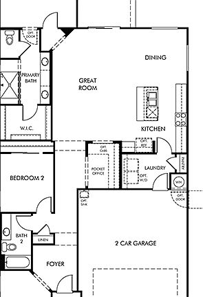 This is a great home for entertaining friends and family in the large great room adjacent to the kitchen. Slate cabinets with marble-look white quartz countertops, warm wood-look tile flooring with beige tweed carpet in our Fresh package.