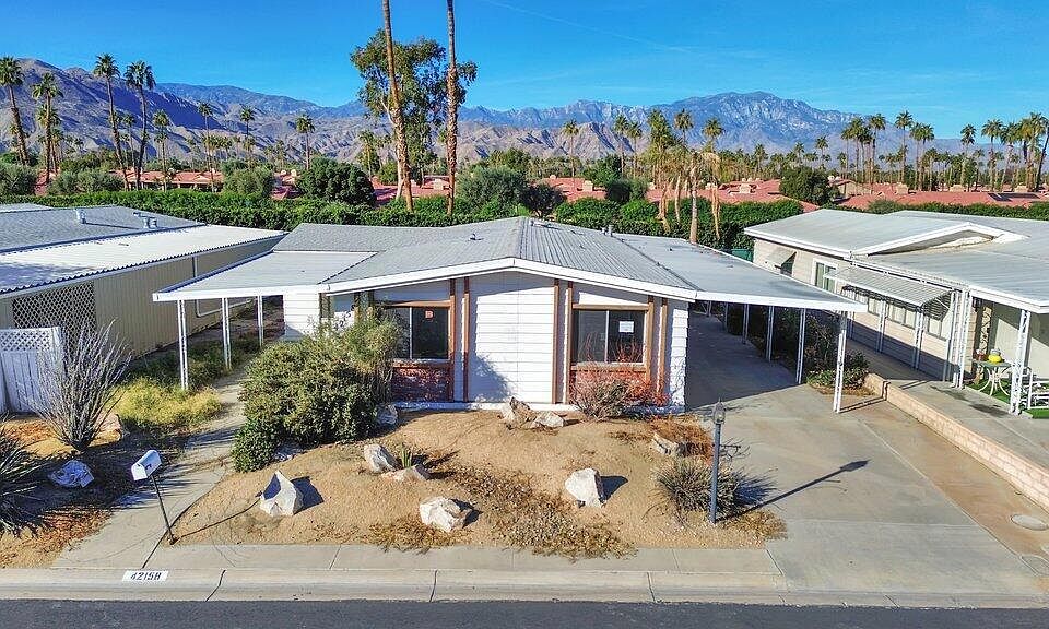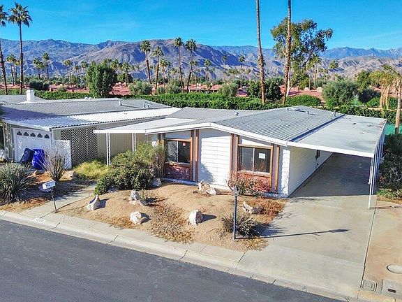 Manufactured home with 433 cert available in Portola Country Club! Desert landscaped front yard, two bedrooms, two bathrooms, covered car port, storage shed and in a gated community! Located in an active 55+ community with all the amenities & activities for you to enjoy: 18-hole par 3 golf course, pickleball, 3 pools, clubhouse with Pub, billiard & fitness rooms. Low HOA fee of $396 includes golf, trash, cable, internet & all community amenities. Close to El Paseo with its great shops & restaurants!
