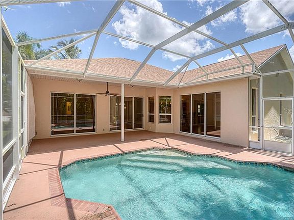 Welcome to this 3 bedroom, 2 bathroom, pool home in Quail Run. Featuring a split floor plan, gas stove, walk-through pantry, 2 car garage, and located in a quaint cul-de-sac; this home checks off all of the boxes. Upon arrival, you will be pleased to see mature tropical and elegant landscaping, including a towering palm, and a fruitful mango tree. As you enter the house the first thing you will notice is the ample natural lighting from sweeping glass door sliders throughout the house. The Master bedroom comes equipped with a large master bathroom, two walk-in closets, tub, shower, and his & her sinks. The kitchen is equipped with a gas stove, dishwasher, and open views of the family room and pool, there is plenty of counters and cabinet space with an additional bar and built-in desk. Relax and Take to the Pool which is inside the fully screened lanai, with a covered patio for shade. Come see for yourself what this home has to offer.