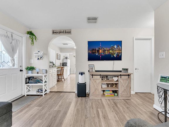 Beautiful and Cozy Home with a Huge Backyard and POOL - Move-In Ready! Perfect for relaxing or entertaining family and friends, this home sits on an expansive 10,000 SQFT lot. Centrally located just minutes from major highways and plenty of shopping, it offers the ideal blend of comfort and convenience for modern living. The AC unit was replaced just a year ago, and the property features storm protection for added peace of mind. Recent upgrades include a newly renovated bathroom fixture and refreshed flooring. The carport has been converted into a separate bedroom with its own private entrance, offering versatility for guests or additional living space.The spacious driveway easily accommodates 3-4 vehicles. Best of all, there's NO HOA, yet the neighborhood is beautifully maintained.