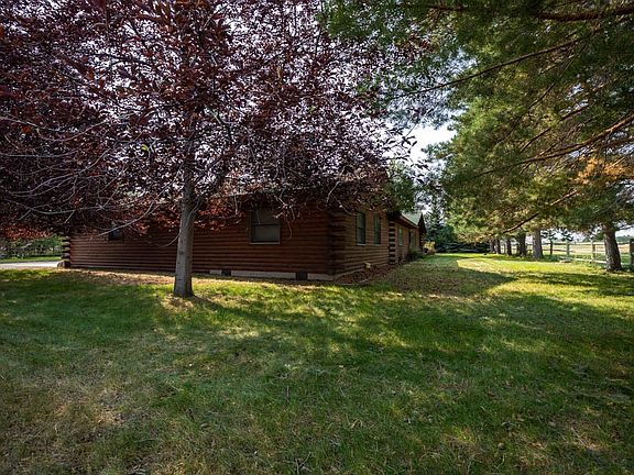 Rare find! Log-sided ranch style home on 1 AC with beautiful mature trees close to town. Built in 1984 with addition/conversion in 1992. Great room with vaulted wood ceiling and sliding door to covered patio. Detached garage/shop building w/pellet stove. Propane tank is leased and used for two gas stoves (natural gas available in the street). Located at the end of a cul-de-sac with privacy gate.