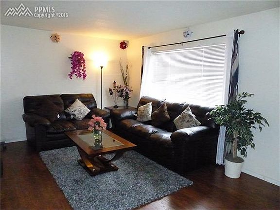 Park-like back yard in quiet cul-de-sac backs to open space with Pikes Peak mountain views! New wood laminate floors, new carpet, new tile! Updated upstairs bathroom with new tub, vanity and flooring! Updated basement bath. New front, back and service doors! Newer garage door! Newer impact resistant roof! Newer hot water heater! Newer stove! New paint inside and out! Large covered patio! Cozy full brick fireplace! Great backyard with lots of flower gardens! Close to Grant school, Palmer Park, shopping and more!
