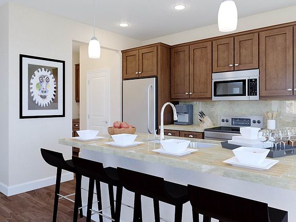 The Keystone is the largest floor plan in the community with the most natural light; it is always an end unit with a two-car attached garage. Open floor plan on the main floor is perfect for family gatherings and friendly get-togethers. Large island to accommodate for seating in addition to a dining area and a living room. You'll also have a half bath, large storage area under the staircase and a pantry with built in shelves!The second floor features two extra bedrooms with walk in closet, bathroom and walk in laundry with linen closet and shelves. Your master suite includes vaulted ceilings, large windows and a master bath. Aside from the frameless Euro shower with bench, the dual sinks, you'll have a large custom closet built by Closet Factory!