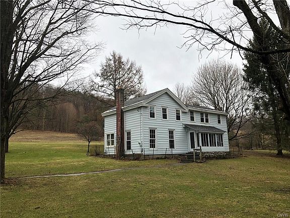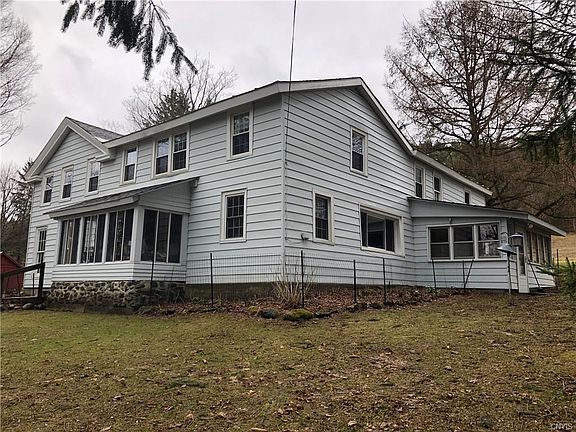 Well kept farmhouse on 9+ acres near lake Moraine, Village of Hamilton, & Colgate University. Over 3000 sf of living area offering LR, FR, 1st flr. office w/built-ins, country kitchen, 1st flr. laundry & pantry, 2 enclosed porches, attached shed/workshop. Second flr. boasts of 4 large bedrooms, including master suite. 2.5 baths total. Some wood floors, lots of closets & storage, wood stove, detached 2 car garage plus garden/machine shed. Plenty of land for a country gentleman/lady! Room for gardens, pets small and large, recreation land. Can't wait for you to see this one but you'll have to wait for the real estate coronavirus curfew to be lifted...stay tuned!