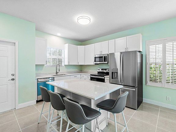 This stunning 4-bedroom corner townhome located just a few min from all Palm Beach Gardens offers, is close to I-95 and the Turnpike. Built in 2007 and fully renovated in Dec 2024, this Key West-style home boasts oversized 9-foot ceilings throughout. Featuring impact windows and doors, the property is both stylish and secure. The brand-new kitchen is equipped with modern cabinetry, sleek quartz countertops, and all-new appliances. The entire home is adorned with elegant 20'' marble-look tile flooring in all living areas and bathrooms. Upgraded baseboards, 6-panel doors, and custom Hunter Douglas Plantation Shutters add a sophisticated touch. Every room is fitted with new LED light fixtures and ceiling fans for added comfort. Freshly painted top to bottom. The home offers two spacious primary bedrooms-one on the first floor and one upstairs- each with dual vanities, large walk-in closets, and bonus accessory closets. Upstairs, you'll find two additional generous bedrooms and a full-size washer and dryer. Enjoy the privacy of a large 18x35 ft backyard, perfect for outdoor living. Two assigned parking spaces are conveniently located right in front of the property.