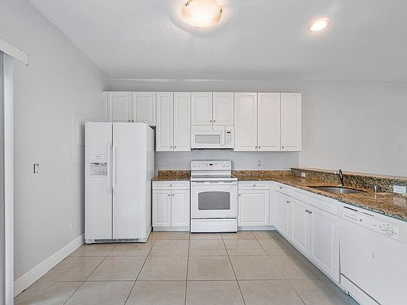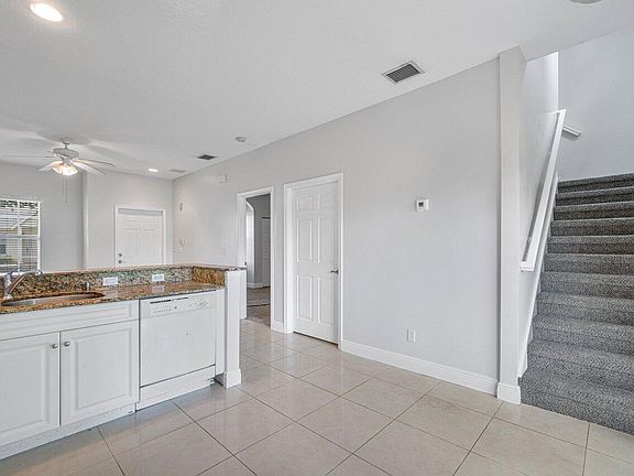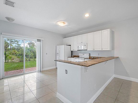 WOW! Rarely available, first floor master bedroom in this gorgeous 3 bedroom 2 bath townhouse with impact windows for under $200k. All new interior paint and carpet. Light and bright with white kitchen, granite countertops, breakfast bar, gorgeous large white tiles in main living area and baths. All bedrooms and baths are oversized. Close to the VA Hospital ,airport, I-95, turnpike, shopping and restaurants! Live where you can get to everything in 5 minutes! Private community of only 30 units. Low $325 monthly maintenance includes all exterior and roof unlike most townhomes, exterior insurance, water, sewer and trash. 2 assigned parking spaces.