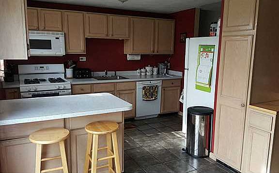 Well maintained split level home. Laminate and ceramic tile flooring. Open kitchen with breakfast counter, slider to deck and all appliances included. Updated bathrooms. Brand new roof 2015. Lower level office and family room with small wet bar. Large fenced back yard with 2 sheds.