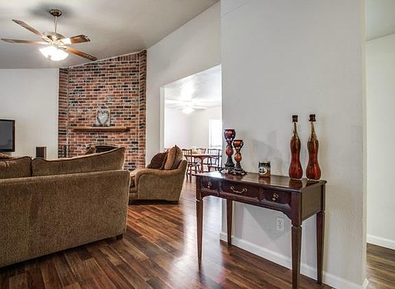 Come home to an open & airy living space, vaulted ceilings, new laminate floors, ceiling fans throughout & a floor to ceiling fireplace! Property has an eat-in kitchen with stainless appliances & a separate formal dining area. The large master bedroom has a spacious en-suite & an over-sized walk-in closet. All 3 bedrooms have new carpet. Enjoy the tree shaded, manicured landscaping & a back yard with a covered patio for relaxing or entertaining.