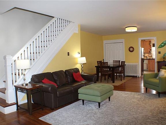 WOW! This 3 BDR, 1.5 BATH brick town home features a chicly updated kitchen, spacious natural light filled open living areas, beautiful hardwood floors throughout, a first floor half bath and well designed outdoor living spaces. The kitchen features granite counter tops with a mosaic backsplash, under-cabinet and pendant lighting, ceramic floors, all black appliances and mudroom area leading to the backyard. The backyard features a privacy fence with gate, green space, gardening areas and a lovely stone-paved patio for hosting or enjoying time spent outside. Upgrades & Updates Include: Newer dishwasher, screen doors, front porch carpet, custom blinds andprivacy fence with gate; new back entrance steps, double gutters and refrigerator;ductless air conditioning units in living room and 3 bedrooms, ceiling insulation & hot water tank.Additional features include a charming stain glass window highlighted by custom blinds, a large 2nd floor landing area, deep linen/storage closets and a large dry basement with storage and a spacious laundry area. Conveniently located close to the Parkway/I-376, the Waterfront and popular shopping and dining places!