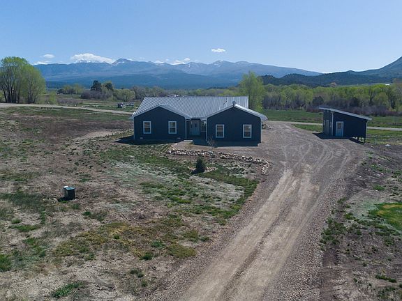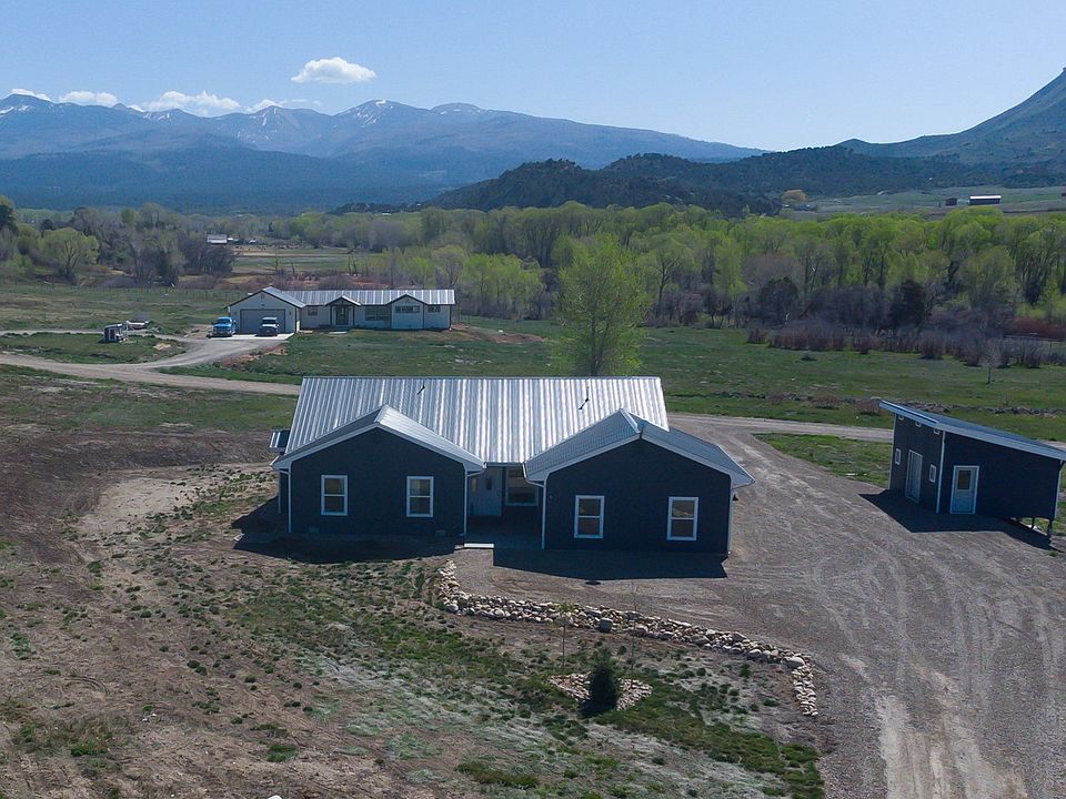 Home in town for sale in Monetzuma County, CO! Don't miss out on this rare opportunity to own a newer home just one mile from the town of Mancos, Colorado in Mancos Ranches Subdivision! The first thing you will notice when pulling up are the "in your face" views of the La Plata Mountains and the surrounding ridgelines, which can also be seen from every window of the house! Built in 2019, the 4 bed/3 bath ranch style home has an open floorplan throughout, with a mix of vinyl flooring and carpeting. The kitchen has beautiful Corian counters, new stainless appliances and a large farmhouse sink. Off the kitchen is a laundry room and an oversized attached two car garage. Two of the bedrooms share a walkthrough bathroom, and the master bath has a double sink. Located on the almost 4 acres is a very roomy shed and a currently under construction HUGE shop (30'x40' footprint, 15' walls and 21' to the ceiling)! Don't miss out on this one!