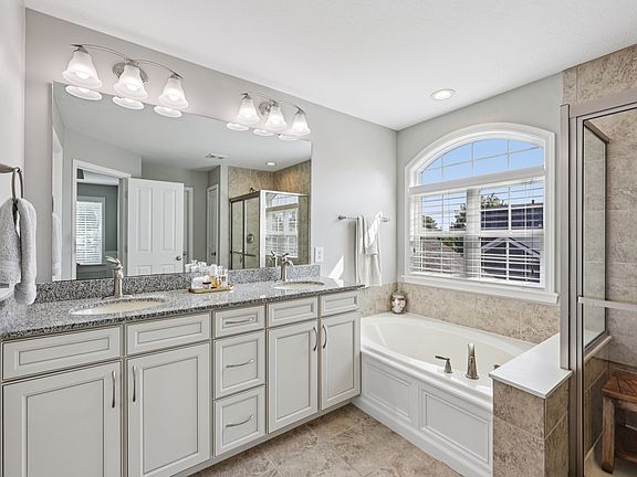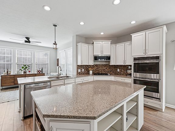 Welcome to this beautiful 5-bedroom home in the sought-after Villages at Bridgewater, where comfort meets convenience. Inside, the main level is thoughtfully designed for all lifestyles- a private home office with French doors, a formal dining room for special gatherings, and a large living room with a fireplace. The gourmet kitchen boasts modern appliances, ample counter space, and a breakfast bar for those casual meals. The sunroom/bonus room is a versatile area which is perfect for your family needs. The boot bench cubby area is great for organization. Upstairs, the spacious primary suite has tray ceilings, a relaxing sitting area, and a private en-suite bath which boasts dual sinks, a garden soaking tub, and a tile shower. Three additional bedrooms and a convenient laundry room complete the upper level. The finished basement expands your living space with a versatile recreation area, a full bath, and a fifth bedroom-perfect for guests or extended family. The backyard is a peaceful retreat with mature trees and privacy. You can relax or entertain with a large deck, patio, outdoor kitchen, and cozy firepit. The social membership to The Bridgewater Club allows you to experience resort-style amenities such as indoor and outdoor pools, fitness center, dining options, tennis and pickleball courts, walking paths, and even a 9-hole golf course. Luxury vinyl plank throughout main and upper levels. New carpet throughout basement and on stairs.