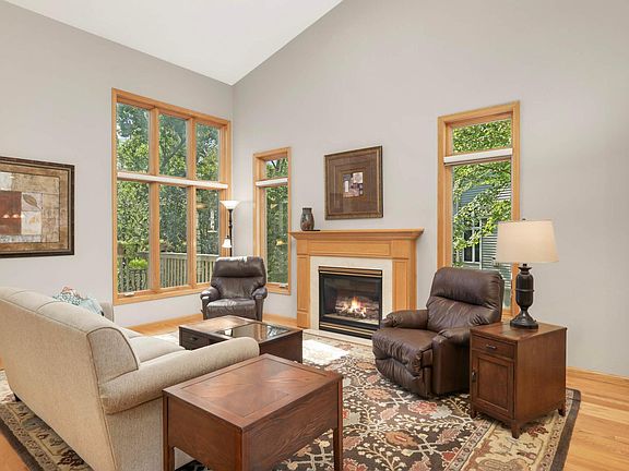 Gas fireplaceGleaming hardwood floorsCambria quartz countertopsCozy gas fireplaceTranquil pond viewsSerene pond viewsOpen floor plan