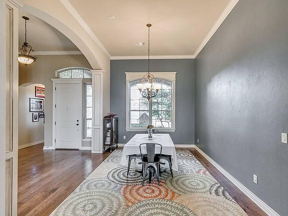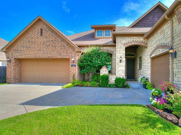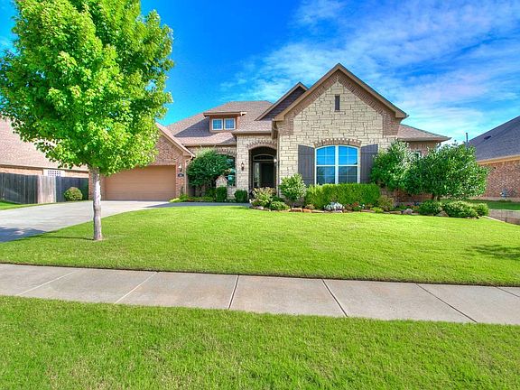 Beautiful home on desirable street in Carrington Place. Property features an open layout with spacious kitchen and living room, plus a formal dining room. Kitchen overlooks the living room, with a large kitchen island, bar seating, a builtin buffet bar, and room for additional seating in the breakfast area. High ceilings throughout the living space allow for lots of natural light from the large windows along the back of the home. Four bedrooms and three full baths are all on one level. Master suite offers access to the covered patio, his and hers vanities and an oversized closet. Plenty to enjoy outdoors, with covered patio, built-in outdoor grill, several mature trees and beautiful landscaping. Great location with easy access to many recreational areas, parks and two community pools. Incredible opportunity in one of Norman's most desirable neighborhoods!