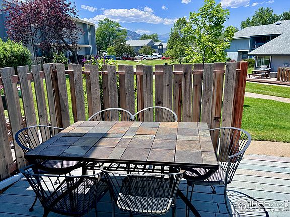 One level living while you gaze upon foothill views from your own deck! Truley the most ideal location in the whole complex! Abuts HOA open space, with trails winding through the complex, open access to adjacent park with basketball court and playground and connected to Boulder bike paths! Gorgeous, refinished, hardwood floors throughout, new carpet, freshly painted, updated kitchen and baths. Attached carport and locking storage next to trash closet. Easy commute to CU Campus, grocery shopping down the street, Twenty Ninth Street Mall, and Kaiser. Washer and Dryer included.