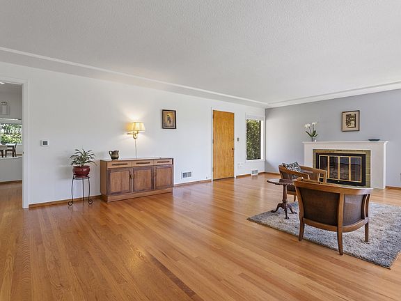 Elevated above the street with view and a touch of city sparkle after dark, this 3 bed, 2 bath mid-century beauty serves up style, space, and soul in one of Portland’s most beloved neighborhoods. Just blocks from the vibrant Fremont corridor and Alberta Arts, this is where timeless design meets everyday convenience. Step inside and you’re greeted with a spacious open living and dining room, where large windows flood the space with an abundance of natural light. Warm hardwoods, a classic wood-burning fireplace, and vintage built-ins ground the home in authentic charm. The kitchen is a perfect blend of retro and refined, with marmoleum floors and a timeless layout that’s effortlessly functional. The original vintage bath is full of character, and all three bedrooms are generously sized for modern living. The lower level is a vibe—featuring a spacious family room with a second fireplace, tons of storage, and an extra-deep 2-car garage (yes, the kind you actually want). Major system updates have already been taken care of: roof (2020), new heat pump for economical heating and cooling (approx. 2022) high-efficiency windows, and a decommissioned oil tank for peace of mind. With elevated views, big rooms, and unbeatable proximity to shops, dining, and local hotspots, this mid-century gem is equal parts cool and comfortable. It's everything you love about Portland—wrapped in a classic frame. [Home Energy Score = 10. HES Report at https://rpt.greenbuildingregistry.com/hes/OR10239099]
