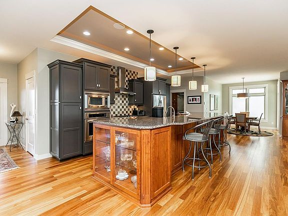 Beautiful condo totally custom built by the owner with so many upgrades and special features its clearly one of a kind! Brazilian Teak floors flow through the main floor and custom Cherry cabinetry is evident throughout. Kitchen boasts a large granite island, storage front and back, beverage refrigerator, custom tile backsplash behind the 5-burner gas stove & beautifully painted Cherry cabinets. Eat at the kitchen bar or relax in the breakfast nook surrounded by Pella windows overlooking the peaceful golf course or step out onto the maintenance free deck for a breath of fresh air. Flanking the gas fireplace in the great room, are custom built cabinets along with additional custom storage and shelving which flows to a unique office/business area overlooking the peaceful backyard. Avid reader? The 4 seasons room is just the place surrounded by Pella windows - all which have built in blinds - and transom windows for a relaxing experience. The main floor laundry has been bumped out to the garage for extra room for storage, counter space, W&D and sink. The large main floor master suite has a custom tiled shower, dual Corian sinks and large walk-in closet with built-ins. Venture out to the back pebble stone patio from the half walkout on your way to the LL which has 10 ceilings, another custom-built open bar area with beautiful glass back tile, granite, bar refrigerator and plenty of additional storage. The 2 large bedrooms with ensuite bathrooms have plenty of storage and closet space. There is an additional play/workout room and an abundance of storage space. This condo has RO, is zoned for the two levels, Central Vac, Sound System, Ultra Violet Filtering System, Automatic Programmable Humidifier on the furnace, Irrigation, a Security System to alarm the owner for radon, Carbon Monoxide, and interior water alerts. It is also connected to police and first responders. The 3-stall garage is ready or you to hook up a heater. This is quality throughout, and a must see. Call me for a private tour!