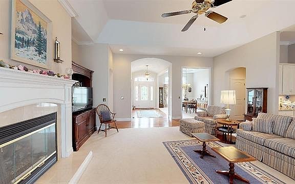 Beautiful & Immaculate, Expanded Brittany Atrium Ranch, 3,400 sq ft on Main w/ 1,500 sq ft Finished Lower Level w/ 4 Bedrooms & 4 Baths & Wonderful Screened-In Patio in Chateaux at Woodfield! Greeted by Covered Front Porch. Open Floor Plan including Foyer w/ tall ceilings, Dining Room to left & Study to right w/ Glass Doors. Great Room w/ Gas Fireplace & Atrium Windows. Kitchen w/ 42 Antique White Cabinets, Granite Counters, Walk-In Pantry & Breakfast Area leading to Screened In-Patio. One side of main includes Master Bedroom Suite w/ Wonderful Master Bath & Two Walk-In Closets, Laundry Room, Mud Room & Half Bath. Other side includes Two Bedrooms & Full Bath. Lower Level w/ Family Room, Fourth Bedroom, Full Bath & Large Storage Area. Premium Anderson Wood Windows & Silhouette Blinds! Sump Pump, Security & Irrigation Systems, Surround Sound System & 3 Car Garage. Great Outdoor Patio & Nicely Landscaped. Already passed Swansea occupancy inspection! $570k+ invested.