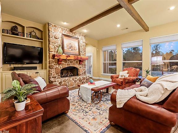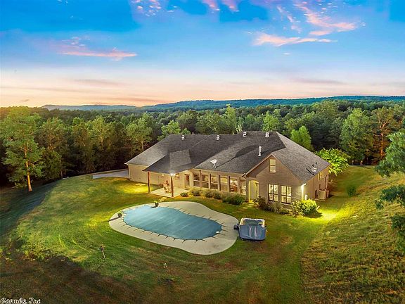 Escape to Rushing Ranch! When my seller found this property she knew she had found something special. 10 beautiful acres with a custom built home sitting on the top peak that overlooks the property. House lives mostly like a one level with only the media room and exercise room upstairs. Pool is well maintained and ready for the new owner to remove the cover and enjoy the last couple months of summer. Property has a gated entrance and horse stables with stalls, electricity, water, and ceiling fans.
