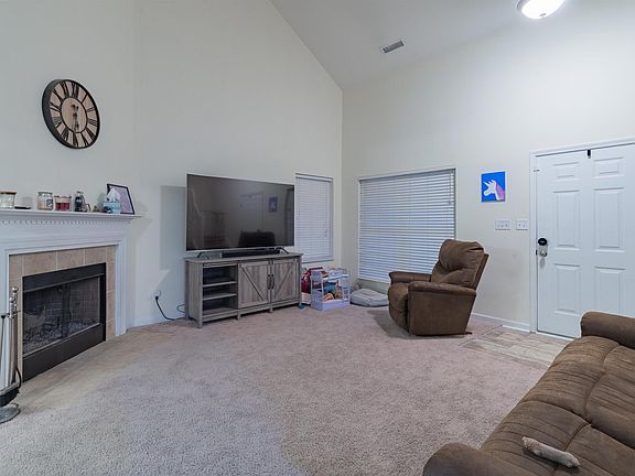 Awesome floor plan with soaring ceilings throughout the Great Room that features a wood burning fireplace. Kitchen is equipped with newer appliances that remain. Formal Dining/eat-in area off the kitchen. Main level master bedroom suite with private bath and walk-in closet. 3-4 bedrooms and 2.5 baths. Upper level loft style family room. Roof was replaced approximately 6 years ago (complete tear off). Nice covered porch, rear deck and privacy fenced back yard along with a 3 car attached garage. Neighborhood Amenities include community pool, playground/park & sidewalks. ONE YEAR HOME WARRANTY PROVIDED BY THE SELLER.