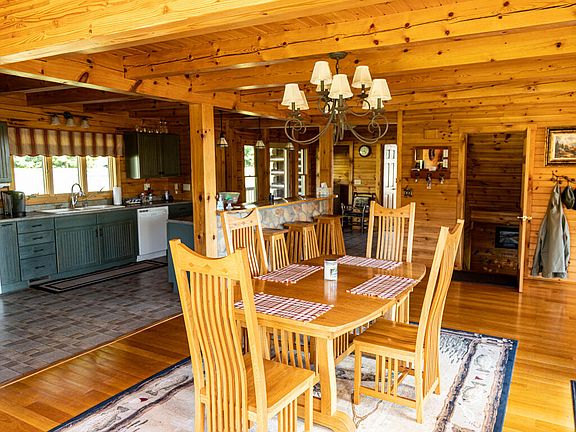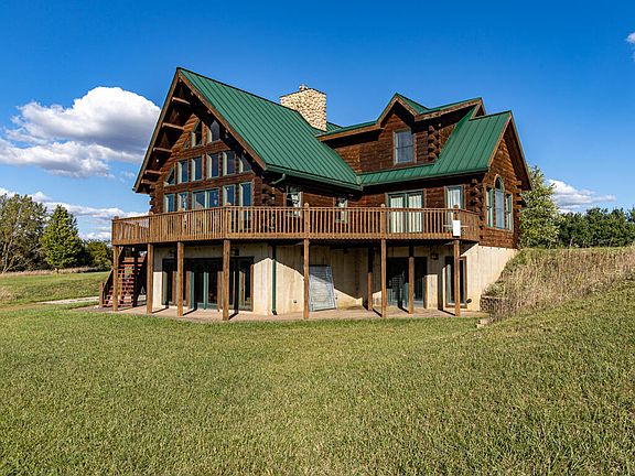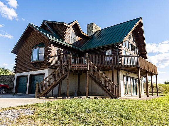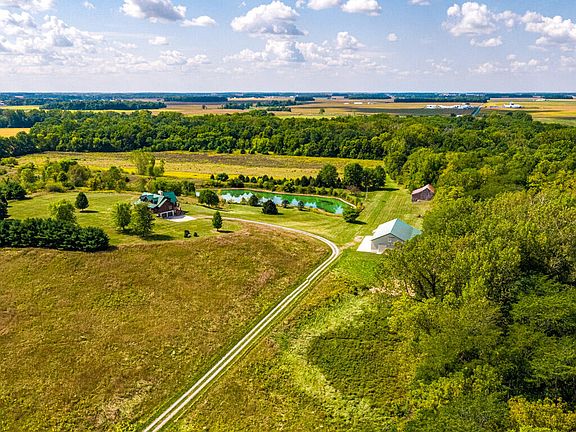 Welcome home to your own private oasis! Gorgeous views from every angle. Bright, airy, open log cabin on 88 acres with cathedral ceilings, full basement and 2 car attached garage. Watch the sunrise from your covered porch in the morning, then in the evening entertain and relax on the wrap around deck and watch the sunset over your stocked pond. Main floor owner suite with semi-private deck, en-suite bath and walk-in closet. On the second floor you will find 2 spacious bedrooms and a full bathroom. Kitchen is open to dining room and family room with gorgeous stone fireplace. The partially finished walk out basement has a full bath and can easily be finished to make a secondary family room and even a 4th bedroom! Geo-thermal heat system. The 46x80 barn has its own well and just needs some insulation and a boiler system to hook up to the heated floor lines and it will be ready to use for cattle or horses. 51 acres of tillable land, 30 acres of pasture and 4.5 acres of woods with the Miami River running through it.