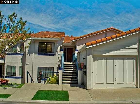 Lovely upper unit w/cathedral ceilings & relaxing hill views. Staged & freshly painted interior, new light fixtures in entry, kitchen, dining area & baths. Sunny eat-in kitchen w/breakfast bar & dining nook. Wood burning fireplace in living room. Custom closets in Master Bedroom. Garage & carport.