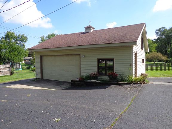WOW! This property has so much to offer. Highly desirable custom built ranch on a partially finished WALK-OUT Basement (with dbl doors and drive), 3 bedrooms, 3.5 bathrooms, beautiful 14x24 Four Seasons Room with vaulted ceiling & skylights, picturesque 1/2 acre lot, 2 car attached garage PLUS 24x32 detached garage with full walk-up loft. Home features new central air, new single zone heat pump ( w/ cooling) in 4 Seasons Room, separate living room and family room, 3 gas fireplaces, some new vinyl plank flooring & Bay window. The basement features a small 2nd kitchen with bar, storage room, many built-ins and a very large and impressive 34x12 workshop w/ dbl doors that open to the drive/backyard. Appliances stay but not warranted.