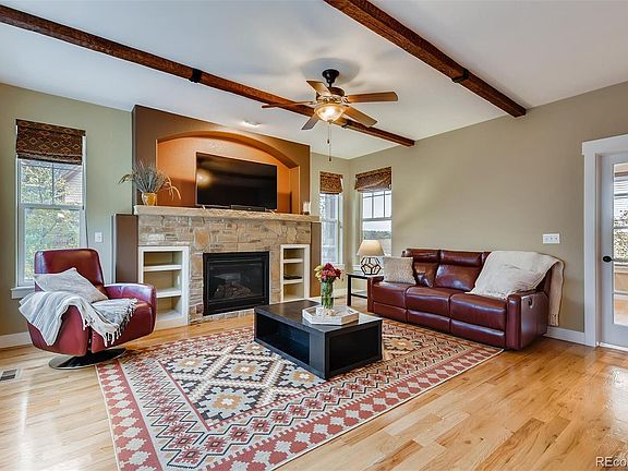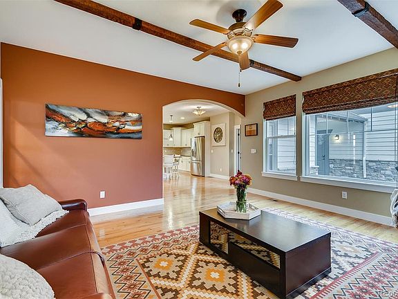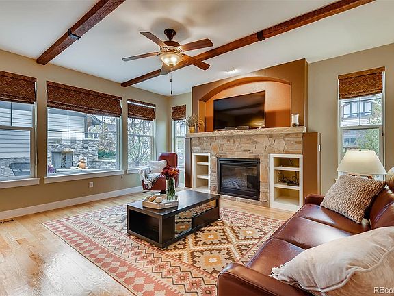 Stunning home in Bradburn located next to open space with unobstructed mountain views! This incredible home features 4 bedrooms, 4 bathrooms, plus an office on the main level which faces the front range. Open kitchen includes granite countertops, stainless steel appliances, large inviting island made for entertaining! Custom cabinetry and butler's pantry leading to the dining room provides extensive storage and a layout perfect for gatherings. Gleaming hardwood flooring on main and upper levels and luxury tile work in the bathrooms. Wake up to front range views from the impressive master suite, complete with 5-piece bath, two large walk-in closets and private balcony. Two additional bedrooms upstairs, shared by a Jack-and-Jill bathroom, each have their own walk-in closet. Laundry conveniently located upstairs as well. The partially finished lower level has high ceilings, additional bedroom and 3/4 bath that truly feels like a guest suite. The unfinished area provides extra storage and has recently become the perfect at-home gym! This corner lot has been meticulously landscaped, with new fencing and a custom dog run. The large concrete patio just off of the kitchen and living room can be enjoyed all year with its cozy gas-burning outdoor fireplace. With multiple balconies and west facing front porch perfect for sunset viewing, this home was designed to have an exceptional outdoor living experience. This is a rare opportunity to live in the perfect location in an already fabulous neighborhood. Don't miss it!