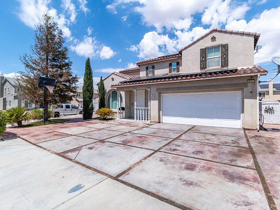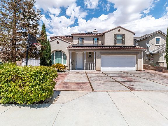 Residing in the HEART OF LANCASTER IS A 4-BEDROOM/3-BATHROOM HOME you are sure to want to call your home! The property features energy efficient Solar panels which is great for low utility bill! As you make your way inside you will find a very bright and spacious floorplan consisting of laminate flooring, high ceilings, recessed lighting, storage space and more. Enjoy your weekends entertaining guests in your family room equipped with a cozy fireplace and a built-in bar! Open to the family room is a well-equipped kitchen with granite countertops, stainless steel appliances, beautiful wood cabinets, as well as an eye-catching backsplash and a center island. The first floor has a beautifully designed bathroom with a unique backsplash. The second floor has 4 bedrooms and 2 bathrooms. The larger of the rooms is a primary bedroom that has a huge walk-in closet and a luxury styled bathroom with a built-in dressing, a double sink, plus a separate shower and tub! Convenient laundry room! Resort like backyard with swimming pool and jacuzzi, corner home in well maintained neighborhood! Located near the Antelope Valley College, Marauder Stadium, the Prime Desert Woodland Preserve, Vons, banks, popular dining options and more.