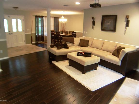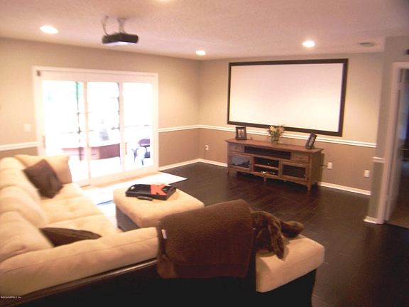 Beautifully updated home in scenic setting and comes with a home warranty. INTERIOR: Has the look of a professionally decorated home including tasteful paint scheme and hand scraped African mahogany floors in living areas. Foyer provides entry into open spacious floor plan that includes a special gift the movie or sports enthusiast will love and that is the overhead projection system with a 110 inch wall mounted movie screen. Formal dining is adjacent for great entertaining opportunities. Kitchen has corian counters, stainless steel appliances, nice food pantry & large breakfast bar overlooking the family room to allow interaction w/family & friends. Family room has cathedral ceiling, wood burning fireplace surrounded by rock accents & French doors opening to the deck.