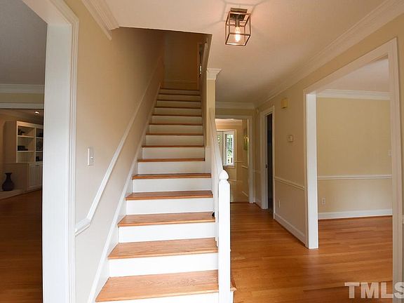 Updated 2-story w/finished 3rd flr BonusRm & unfinished basement on beautiful, heavily wooded 1.13 acre lot in Midtown's Hickory Hills, near North Hills shops/restaurants & I-440. Huge Deck overlooks PRIVATE fenced backyard that backs to Eastgate Park. Frest paint in & out; hardwd flrs; deep crown molding; spacious formals; KIT w/SS appls/white cabs/desk/pantry/bay-windowed Bfast area open to FamilyRm w/gas log FP flanked by cabinetry; lg MudRm w/porch; huge MBR w/WIC & lg tiled shower; tons of storage!