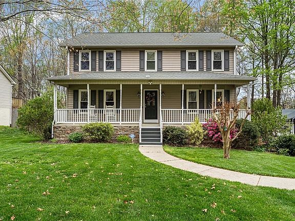 Discover ample room for you and yours to flourish in this impeccably kept 3 or 4-bedroom, 2.5-bathroom residence, ideally situated for easy access to I-40 and all the Triad has to offer. Embrace serene moments on the inviting front porch, perfect for daytime relaxation, and cozy up by the warm gas log fireplace as night falls. This charming abode features a traditional dining area, alongside a functional eat-in kitchen, and boasts a versatile finished basement room suitable for a bedroom, bonus, home gym, or office. Step outside to the expansive deck, enveloped by the tranquility of the wooded backdrop, creating an idyllic setting for outdoor gatherings and entertainment.