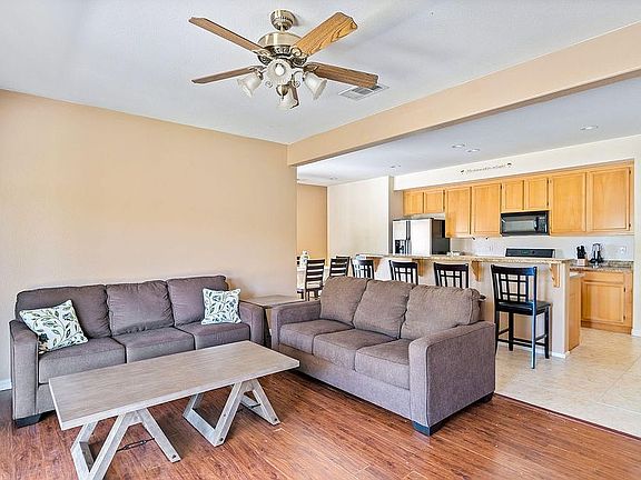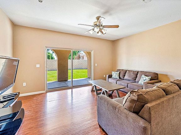 Welcome to Falcon Crest. Great investment property, short term rentals allowed or family home, Great location near the high school in the heart of Palm Desert. Newer development built in 2007, offers a uniform neighborhood with a HOA. Solar is on the roof and hooked up as solar tiles. This will help take down the California Edison bill for electricity, this is a great way to save money on power and live in desirable Palm Desert. Property is nearly 1,500 sf has 3 bedrooms and 2 full baths. Upgrades include wood flooring in bedrooms and living space. Tile floors in kitchen and entry. Ceiling fans and window coverings are installed. Come and see what this great property has to offer today! New AC, big back yard ready for your pool, covered patios keep you shaded from the summer sun, this property is frequently rented by AirBnb or VRBO guests please do not disturb them, call for information regarding this property.