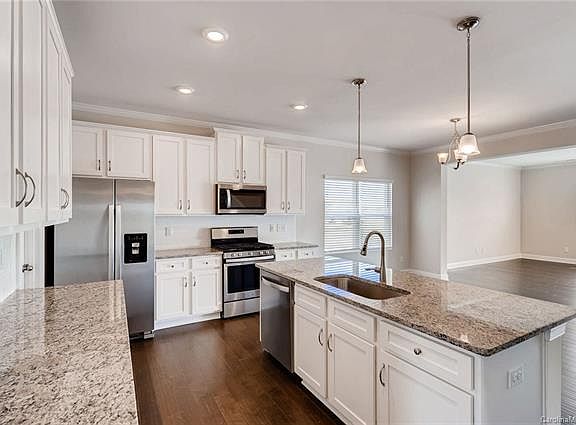 A gourmet kitchen features modern white cabinets, granite counters, a large island with breakfast bar and a complete suite of stainless-steel appliances. A downstairs bedroom provides the perfect space for a guest room or can be used as an office! All four bedrooms on the upstairs level boast a walk-in closet! The master suite, complete with vaulted ceiling and private bath, is the perfect place for homeowners to retreat to for some relaxation. **Ask us about paid closing cost** **Union County School District - Porter Ridge Schools - 2.8 miles from our community**