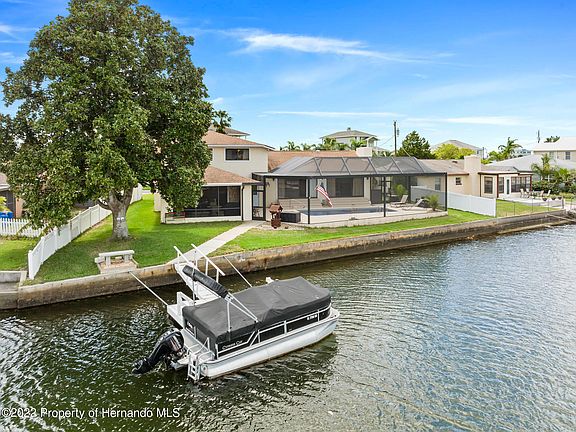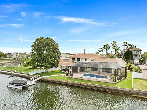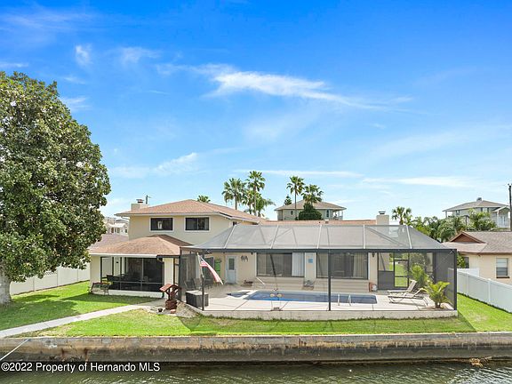 Looking for the perfect waterfront Home? Get ready to live the Florida dream and come fall in love with this tri-level 4 Bedroom 3 Bathroom 2 Car Garage POOL Home located in Hernando Beach!! Bring the boat as this home has wide deep-water canal DIRECT ACCESS to the Gulf of Mexico and 100 feet of water frontage. Seawall has had Poly foam reinforcement done in 2022 and includes a 10year warranty. Updated and impeccably maintained this home is ready for its new owners to love. Major improvements include Roof 2017, 2 new AC Units and Handlers 2019, new Panoramic Pool Cage 2020, New Pool Pump, Filter and Chlorinator 2020, New Water Heater 2020, Dock Rebuilt 2020, Exterior Paint 2021, and Pool and Deck Repainted in 2022. See attached list for ALL Upgrades.. too many to list! Spacious master suite with stone wall detail on upper floor with balcony provides beautiful views and sea breezes. Master bath has large walk-in shower, dual sinks and make-up vanity. Two bedrooms and bathroom also included on top floor. 2nd Level houses updated kitchen featuring beautiful wood cabinets, granite counters, tile backsplash, and newer SS appliances. Also on this level are a separate formal dining room and living room with sliders leading to the pool and a beautiful view of the canal. Ground floor features additional bedroom, bathroom (with access to pool) and family room with fireplace. With its slider access to the pool and cabana area, it's perfect for entertaining or an in-law living space. Yard is beautifully landscaped. Call today for your chance to view this MUST SEE HOME! Elevation certificate available.