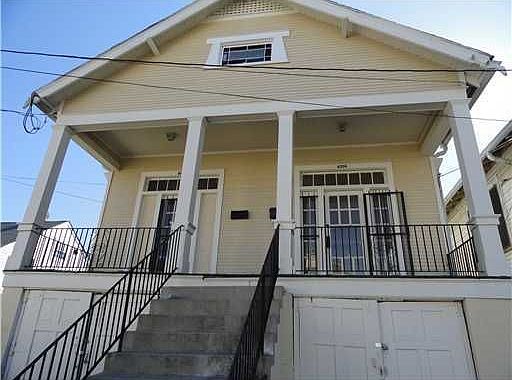 New Orleans sytle raised basement, two story double. Two bedrooms up and one down. Basement is huge and could be used in many different ways as 2 bedrooms or the one bedroom with a living room. Second floor has high ceilings, wood floors, new kitchen, freshly painted. Live in one side or rent both. Take a look - it's really big!!!!!!!