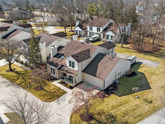 This cozy 2 bedroom and 2 full bath townhouse in the Sawmill Woods subdivision features a 1st floor primary bedroom suite that has plenty of closet space and updates. This condo is one of a few that has a 2 car garage and private driveway. The open living room is spacious with cathedral ceilings, a wood burning fireplace and sliding doors to your private patio. The separate dining area and breakfast bar looks into the updated kitchen. Next to the kitchen is your laundry room as you come into the condo from the garage. Head upstairs to a potential second living space or office. The second bedroom and full bath are also upstairs. Sawmill Woods all exterior maintenance included in association dues: exterior siding, privacy fence, landscaping, lawn care, snow removal, roof, windows and exterior door replacements. Subdivision also includes clubhouse, pool, basketball courts and tennis courts.