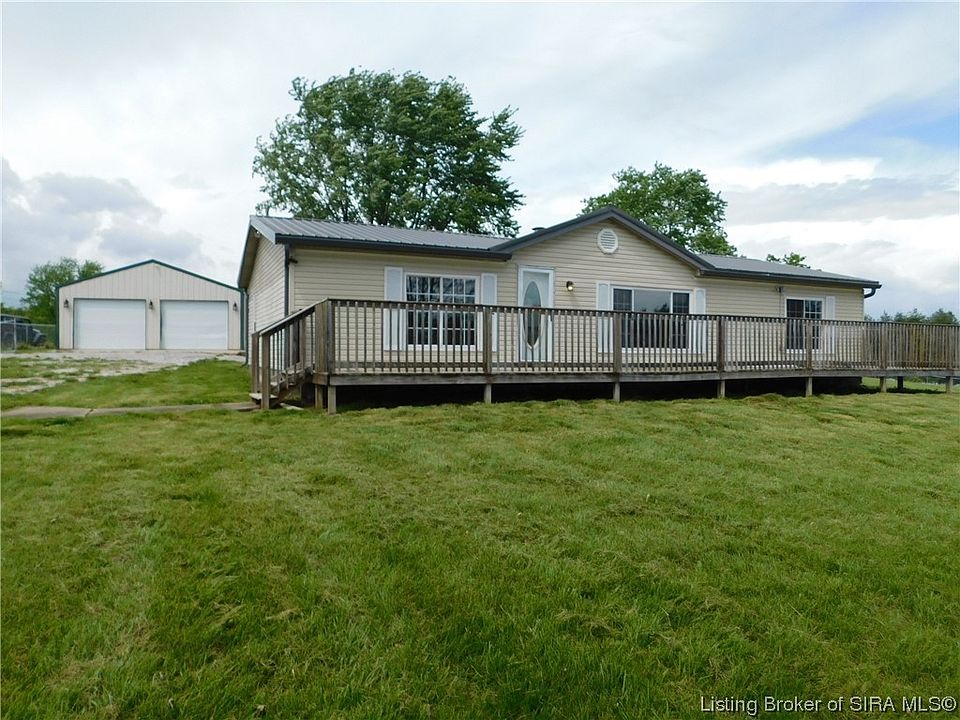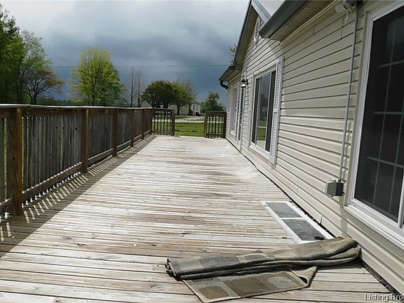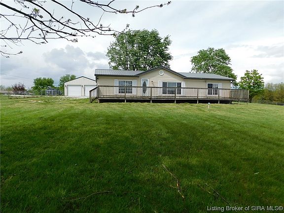 Motivated Seller! Great home on corner lot with 3 BR., 2 BA., on 2.31 completely fenced acres with scenic views. This home has an abundance of kitchen cabinets and appliances are included. Living room with woodburning fireplace.. Master suite has a large master bathroom, double sinks, stand up shower and garden tub.. also a large walk in closet. Amentites include a new METAL ROOF, NEW FRONT DECK and a 20 x 28 insulated DETACHED GARAGE with electric and concrete floor. Nice 10 x 32 Covered back porch for entertaining. Some fruit trees for your enjoyment. Conveniently located just off of HWY 60 and 30 min. to Louisville. Home is being sold "As Is".