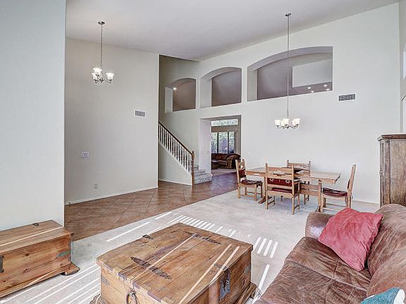 One owner two story home located in the desirable Desert Ridge area on a quiet street with Cashman Park, elementary school and walking trails all nearby. Beautiful home features 3 bedrooms & 1 full bath upstairs. Master with double vanity, separate shower and tub is conveniently located downstairs along with half bath, vaulted ceilings and gas fireplace. New interior & exterior paint, quartz counter tops in kitchen & laundry, neutral stone back splash in kitchen and 18'' tile in main traffic areas. New hot water heater and water softener. The backyard features a large patio, pool, & wood burning fire pit. Mature landscaping in front and back including several citrus trees.Just minutes away from Desert Ridge Mall with shopping, restaurants & movie theaters. Easy access to Loop 101 and 51