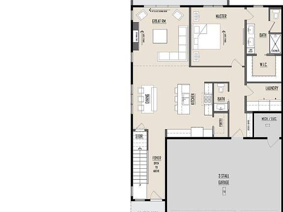 Large covered patioOversized center islandSleek quartz countertopsGourmet kitchenSoaring ceilingsSpacious pantryDual sinks