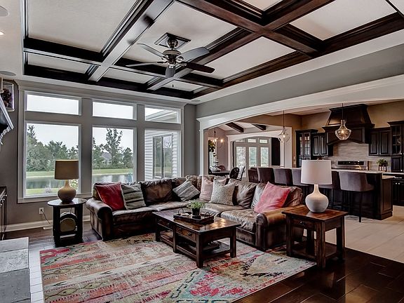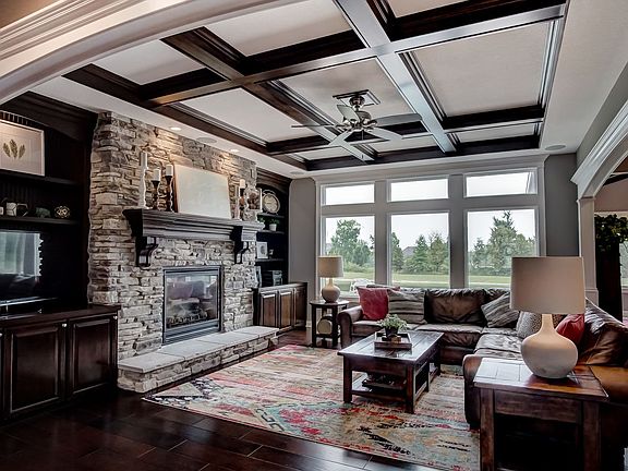 Gorgeous open floor plan home with abundant trim work on .77acre lot in highly desirable Hawthorne Park Estates; Cul-de-sac st, pond, in-ground heated pool, electrical hookup for hot tub, irrigation system, extensive landscaping including extra large patio around pool, outdoor hearth room with fire feature, and outdoor pool storage room connected to home (not included in sq footage). Over-sized 4 car HEATED garage with EPOXY Floors and a half bath! Security System with 5 cameras; wired for 3 zone stereo system and builtin wall speakers; central vac; Main level mstr has dbl tray lighted ceiling, ext lrg, 1.5 story closet; Mstr bath has heated tile floors, 2 entry shower with double shower heads and rainfall; Lrg mudroom with 6 built-in lockers, w/d hookup, sink, and pocket door; EXTRA lrg pantry with refrigerator hookup; living room has wood coffered ceiling, floor to ceiling stone fireplace and built-in book shelves; Beautiful Kit has quartz counter tops, ext lrg island, gas stove and SS kenmore elite appliances. Breakfast room vaulted, wood beam ceiling. Hearth room has wood floors, large windows and built-ins. Open staircase leads you to the 2nd floor with 2 sets of jack-n-jill bedrooms all 4 with walk-in closets, 2 bdrms with lighted tray ceilings and 1 with built-ins; 2nd laundry room upstairs. Basement has custom stone wet bar with granite and blacksplash, lots of daylight windows, stone fireplace and built-ins, full bath with tile shower, exercise room, bedroom, rec area and 2nd set of stairs leading up to garage