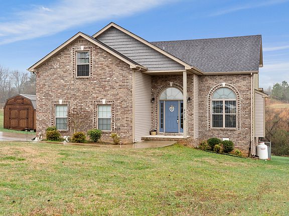 GORGEOUS 4 bedroom and 2.5 bath home features ; spacious living room with stone fireplace, hardwood flooring and high ceilings; modern kitchen with brown cabinets, eat-in area, complete stainless appliances, tile backsplash, and granite countertops; master on main level w WIC, double vanities, deep soaking tub, and tile shower; utility room next to master bedroom. The list goes on and on ! Come check me out. HUGE SHED IS STAYING!! Zero turn mower to convey
