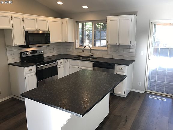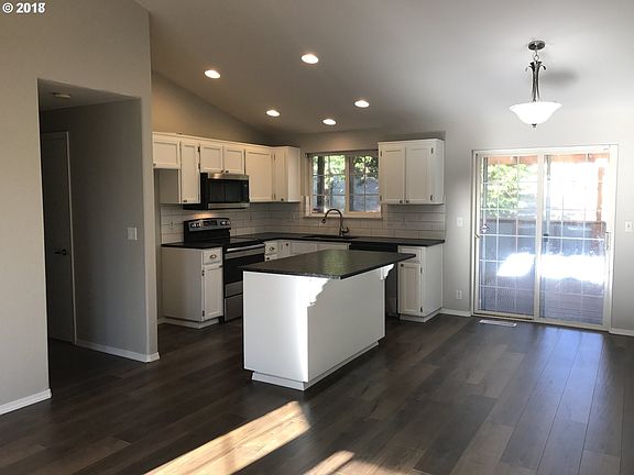 Like new home!! Updated throughout. Roof is less than a year old. Painted inside and out last summer. Great room layout with granite counter tops, newer laminate flooring, carpet, tile. Everything is clean, nice and move in ready! Cute chicken coop in the back complete with chickens! Fenced yard, with peek view of Mt Hood, tucked away on a flag lot.