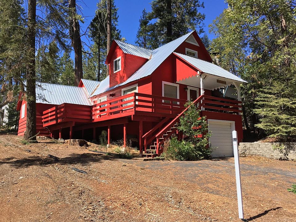 Your sanctuary with great location! Classic 3/2 cabin with master on main floor, 2 more bedrooms and a bath upstairs, kitchen, living room, store room & attached woodshed, large deck for BBQ. Garage under the main floor with inside access, paved drive way, extra parking. This classic has a beautiful fireplace with insert. Easy walk to Village restaurants, and the Lake. Minutes from the marina & China Peak. Enjoy this great cabin just the way it is or update.