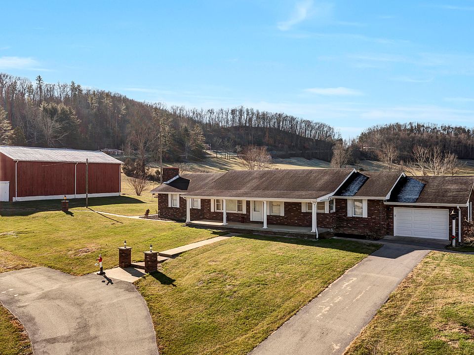 Here's a really nice brick ranch situated on appx 9 acres. Approximately 2950 square feet with 4 bedrooms, 2 full baths, kitchen , dining area, family room, utility room, and a very large den area I'd say there's room for just about everyone!! PLUS a full basement too!